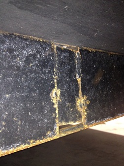 And ends like this, needing to be sealed every year! No seam one piece aluminum roof is all we sell.