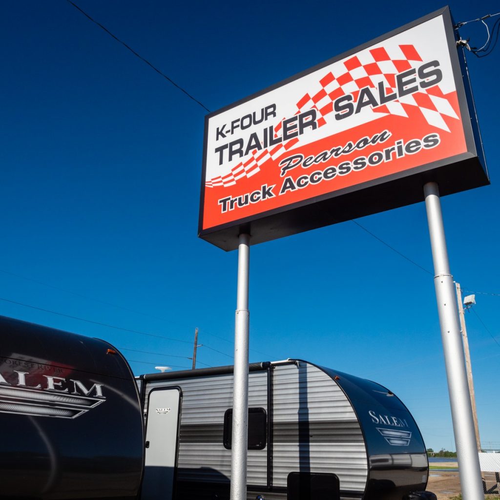 Dwight Pearson opened up K-Four Trailer Sales in 1998. He started off with 10 trailers and has grown his family owned business into a 200+ trailer in stock company. K-Four sells trailers, RV and truck accessories all across Kansas and the USA. His wife Alisha has helped him run the company for many years and they are proud of what they have accomplished in the last few years.